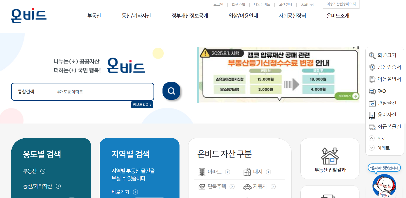 온비드는 한국자산관리공사(KAMCO)가 운영하는 국가 공매 시스템으로, 정부 기관이나 지자체, 공공기관이 보유한 유휴자산을 투명하게 매각하는 전자 플랫폼입니다.
